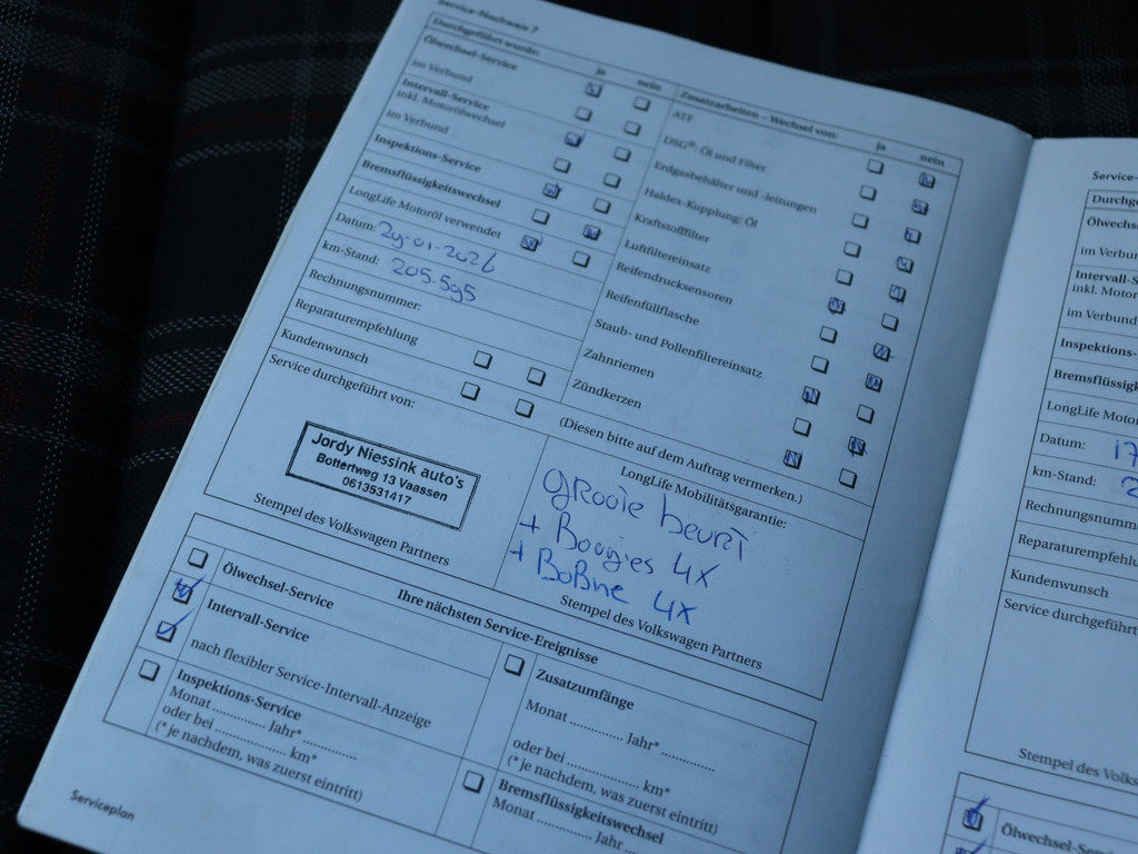1 maand garantie, vloeistof controle, nieuwe APK en auto wassen.