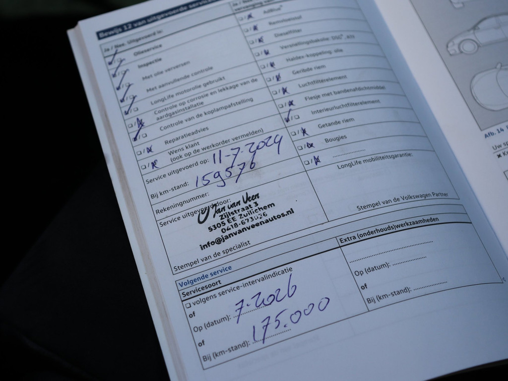 1 maand garantie, vloeistof controle, nieuwe APK en auto wassen.