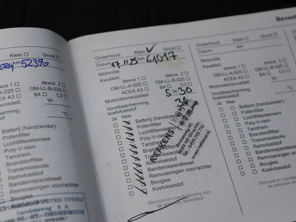 1 maand garantie, vloeistof controle, nieuwe APK en auto wassen.